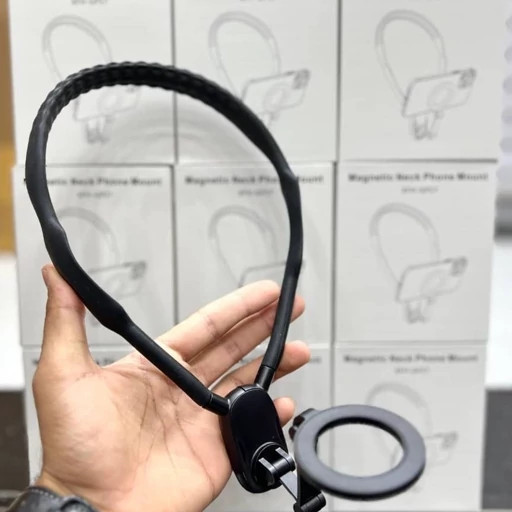 این نگهدارنده موبایل یک طراحی انعطاف پذیر، باکیفیت و با دوام دارد و می تواند به گونه ای تنظیم شود تا به صورت ایمن و مطمئن در اطراف گردن شما قرار گیرد. چسپندگی محکم آن تضمین می کند که تلفن شما در جای خود باقی می ماند و به شما این امکان را می دهد که بدون نگرانی آزادانه حرکت کنید و از آن برای تولید محتوا، تیراندازی و یا سایر کارهای در حال حرکت استفاده کنید. این هولدر گردنی با طیف گسترده ای از دستگاه ها از جمله آی فون، سامسونگ کهکشان، Huawei، LG و ... سازگار می باشد و همراه آن حلقه فلزی وجود دارد تا بتوان از آن برای تمامی مدل های تلفن همراه استفاده کرد. این هولدر مغناطیسی به شما اجازه می دهد تا به راحتی زاویه دید را تغییر دهید، این موضوع برای سازندگان محتوا که نیاز به انعطاف پذیری در ضبط از زوایای مختلف دارند، بسیار مناسب و کاربردی است. با فشار دکمه اتصال، شما به راحتی می توانید نگهدارنده را به گردن خود وصل و یا جدا کنید، این ویژگی در طول استفاده روزمره بسیار کاربردی می باشد. برای امنیت بیشتر در طول فعالیت های فیزیکی سبک، یک بند داخل جعبه گذاشته شده است که باید آن را وصل کنید تا هیچ نگرانی بابت افتادن موبایل نداشته باشید. استفاده از این هولدر گردنی برای ورزشهای با شدت بالا مانند پرش قوی (در حال دویدن سریع و غیره) توصیه نمی شود. برای تولید محتوا، ورزش های سبک، فعالیت های روزمره و ... توصیه می شود.