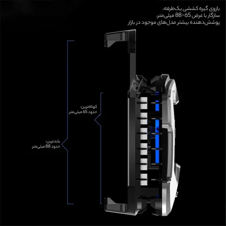 | مشخصات | دارای رادیاتور(هیت سینک) متریال ABS ، سیلیکون و فلز 10 وات دارای فن 7 پره فوق العاده سریع قابلیت تنظیم سرعت در 3 سطح دارای نمایشگر دیجیتال نشان دهنده دمای لحظه ای گوشی موبایل دارای RGB برای گوشی با عرضهای 65 تا 88 میلیمتر دارای پد ضد خش سیلیکونی این فن رادیاتوری خنک کننده کمپانی معتبر ممو Memo علاوه بر داشتن بدنه مستحکم، تکنولوژی خنک کنندگی آنی و متریال با کیفیت و بادوام دارای طراحی زیبا و منحصربفردیست. چراغ RGB کار رفته در طراحی این محصول همزمان با راهاندازی محصول روشن میشود و جلوهی بسیار زیبایی به گوشی موبایل شما میبخشد. طراحی این فن خنک کننده موبایل گیمینگ زیبا و منحصر بفرد است. بدنه ی محکم این خنک کننده گوشی موبایل جنس ABS بوده که متریال بسیار با کیفیت و با دوامیست. همینطور بخش هایی که به طور مستقیم با موبایل در تماس هستند به دلیل داشتن پد های نرم و سیلیکون به هیچ گونه خط و خش یا آسیبی روی موبایل شما ایجاد نمیکند. این خنک کننده گوشی موبایل علاوه بر داشتن طراحی، وزن و ابعاد بسیار مناسب، کم صدا و ساکت است. بنابراین می توانید آن را با خود به راحتی حمل کنید و در هر زمان و مکانی بی دغدغه با گوشی موبایلتان بازی کنید. این فن خنک کننده دارای سه سطح خنک کنندگی متفاوت است که با فشار دادن دکمه ای که بر روی آن تعبیه شده است میتوانید از L1، L2 و L3 آن بهره ببرید. |