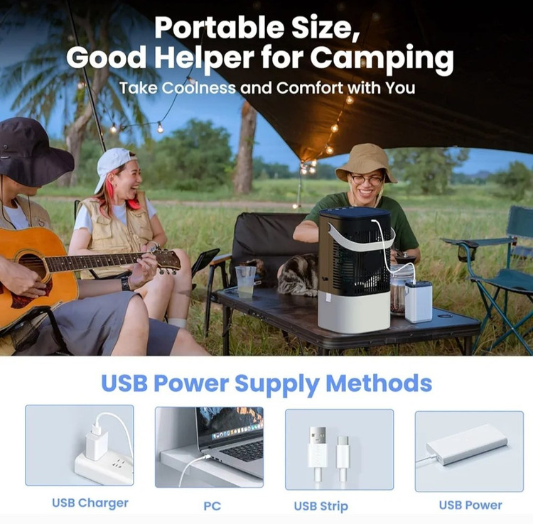 کولر آبی رومیزی قابل حمل با ظرفیت ۱۰۰۰ میلی لیتر و توان ۱۰ وات با سه درجه سرعت و با کارایی سه در یک YP2306 با فیلتر قابل شستشو و قابلیت اضافه کردن یخ به مخزن جهت سرمایش بیشتر