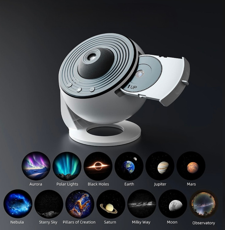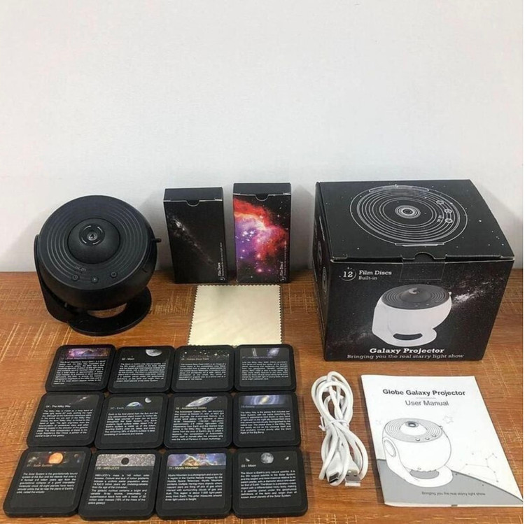 این پروژکتور کهکشانی ۱۳ دیسک با ۱۳ جلوه متفاوت از جمله جلوه ماه، زمین، کهکشان راه شیری، منظومه شمسی و... همراهشه که کیفیت فوقالعادهای دارن و با قابلیت تنظیم زومی که دستگاه داره میتونید در هر فاصلهای یک جلوه زیبا بندازید روی سقف اتاق.
